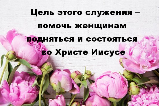 Мета цього служіння - допомогти жінкам піднятися і відбутися у Христі Ісусі.